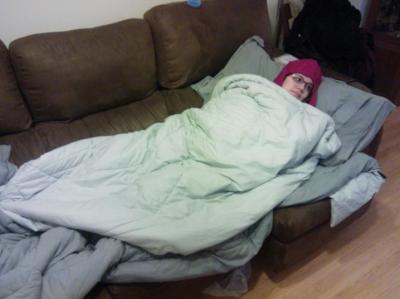 Selênia estava com cólicas e ficou de molho o resto do dia.
