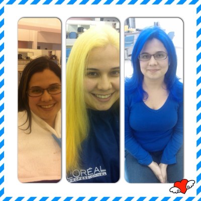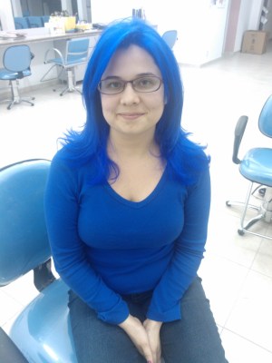 Dia todo azul. Após as atividades laborais, Selênia foi para o salão e lá ficou. O profissional Marlon Cardoso conseguiu fazer um excelente trabalho!!! Hoje foi dia de descanso da academia, pois a Sê ficou no salão até tarde. Vejam as fotos: