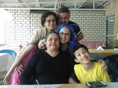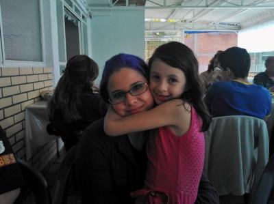 Acordamos “cedo” para o aniversário da Mamuska. Quando estávamos estacionando perto do restaurante, uma louca começa a gritar chamando a menina de cabelo azul!!! Era a Carolzita querida!!! Amei encontrá-la, mesmo que tenha sido rapidamente. A festa estava muito boa e a comida também!!! Parabéns, Mamuska linda. Amamos você!