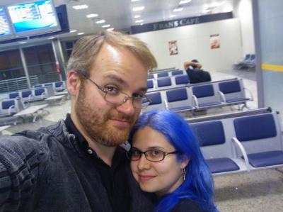 Assim que arrumamos tudo para descer uma moça da Azul (\o/) anunciou que nosso voo estava atrasado e que o embarque seria em aproximadamente uma hora. Nos divertimos muito com a situação e a Sogrete falou que nós éramos muito azarados e que com ela isso nunca acontecia. Algum tempo depois, a Sogrete falou para tomarmos um café lá embaixo e caminharmos um pouco. Concordamos e arrumamos nossas bagagens de mão para descer.