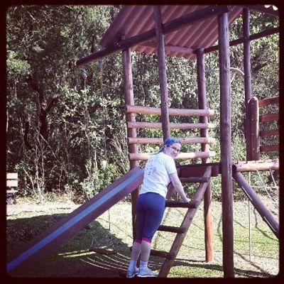 Levantamos e nos arrumamos para almoçar no shopping. Antes de sair do condomínio, fomos ao parquinho novo comprado pelo pessoal da administração. Ficou ótimo!!!