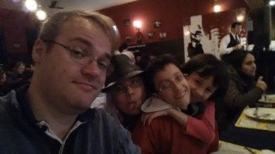 Depois de um dia cansativo, saímos para comer um delicioso rodízio de pizzas e batatas suiças. Estava muito divertido e gostoso.
