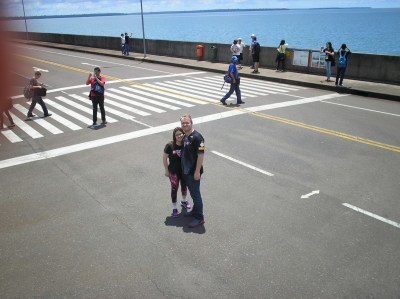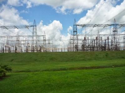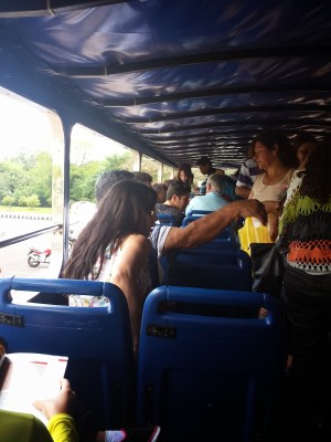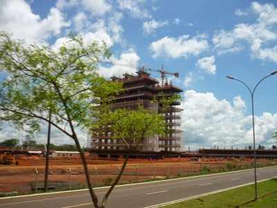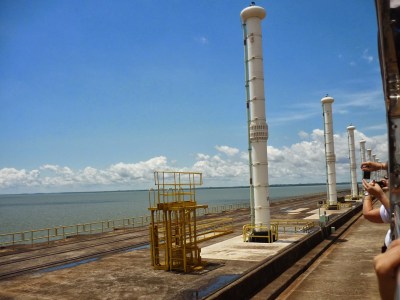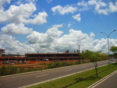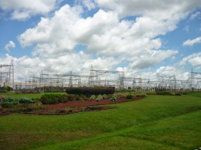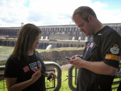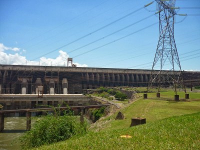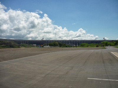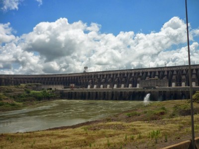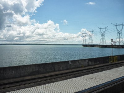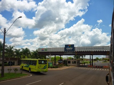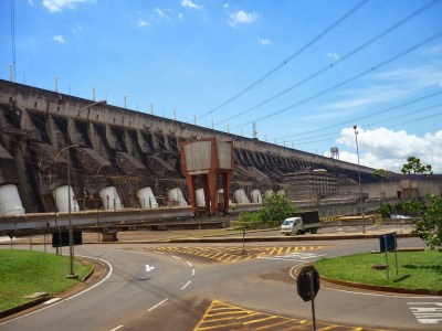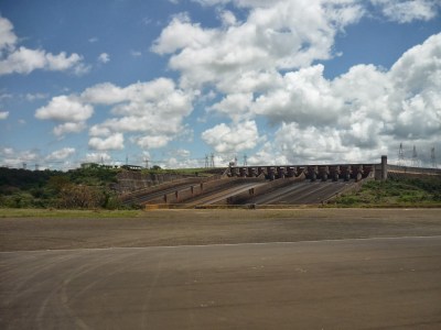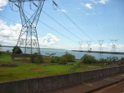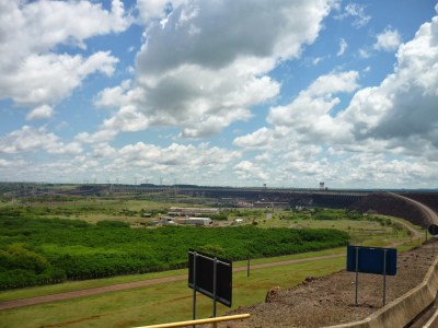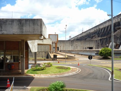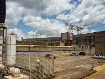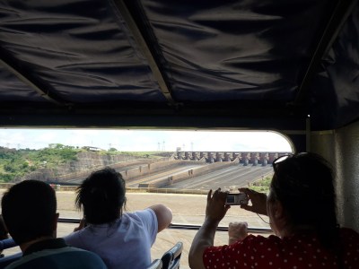O segundo passeio foi a visita panorâmica da usina. Antes de começarmos o passeio, entramos em um auditório e acompanhamos um documentário sobre Itaipu. Achamos o vídeo extenso demais para uma visita turística e todos quase dormiram durante a exibição. Como o nosso guia pegou o número errado da “passagem”, fomos ao Ecomuseu e depois retornamos ao local de embarque do ônibus para poder fazer a visita.