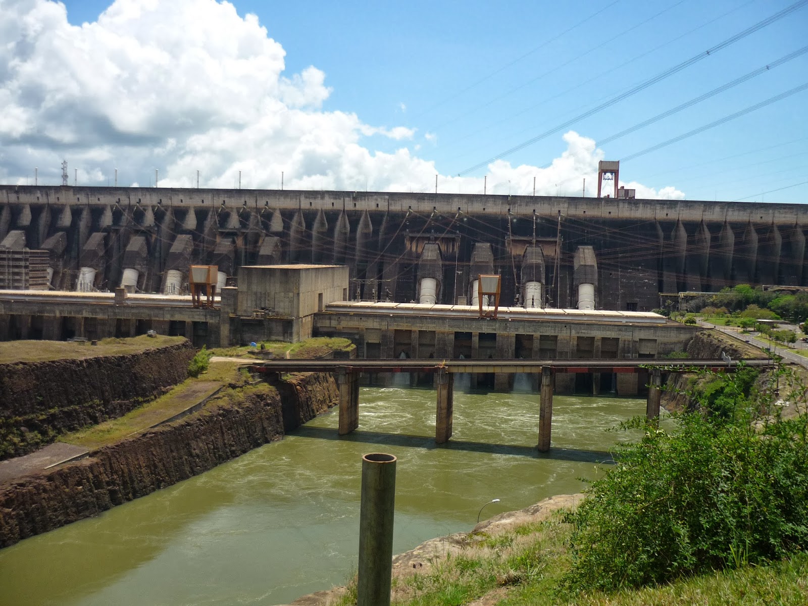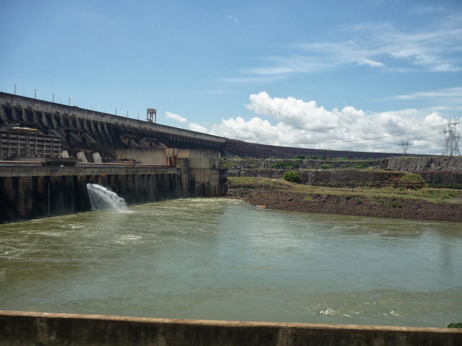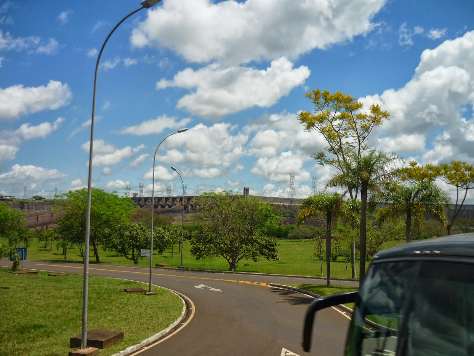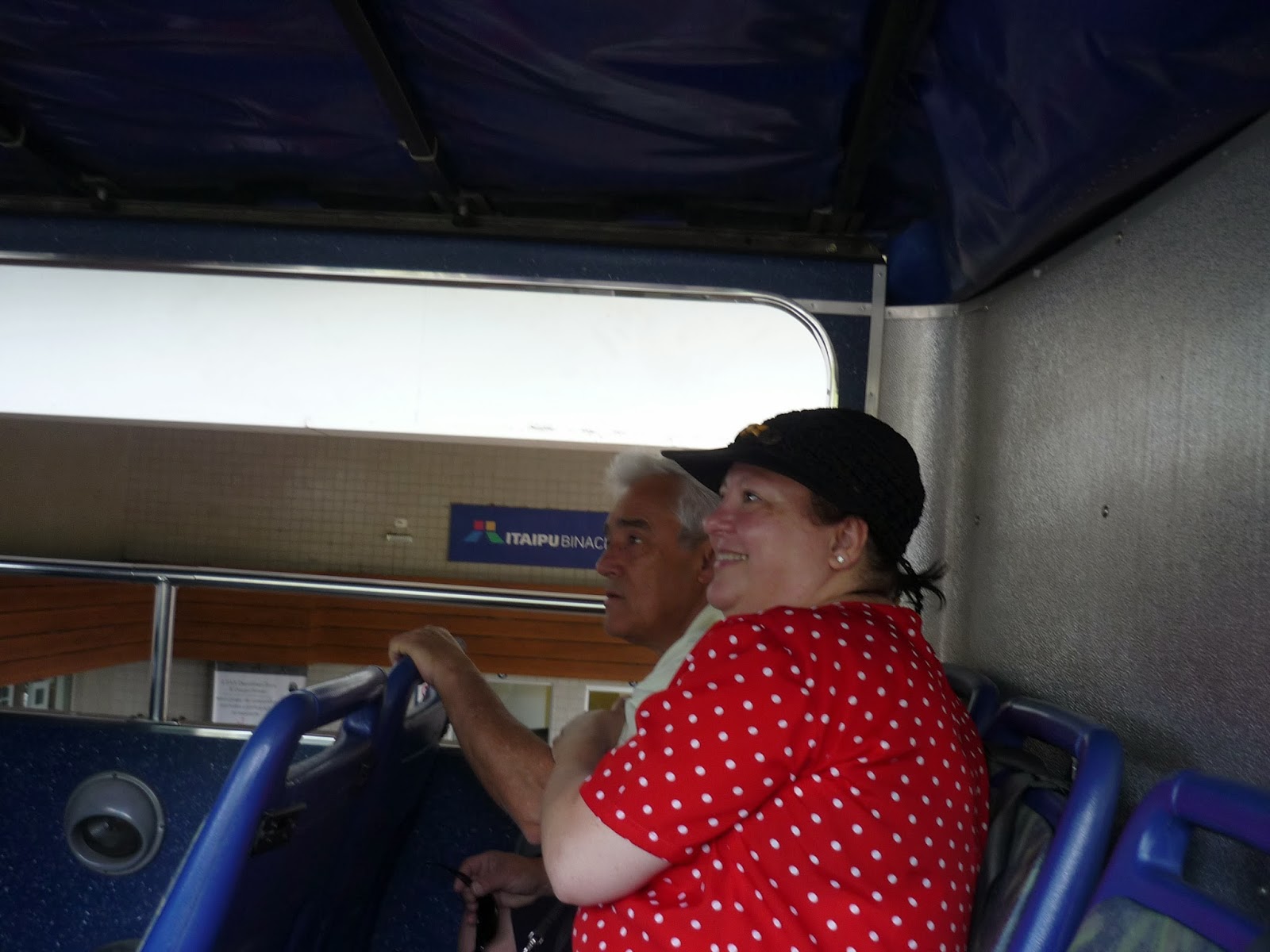 O segundo passeio foi a visita panorâmica da usina. Antes de começarmos o passeio, entramos em um auditório e acompanhamos um documentário sobre Itaipu. Achamos o vídeo extenso demais para uma visita turística e todos quase dormiram durante a exibição. Como o nosso guia pegou o número errado da “passagem”, fomos ao Ecomuseu e depois retornamos ao local de embarque do ônibus para poder fazer a visita.