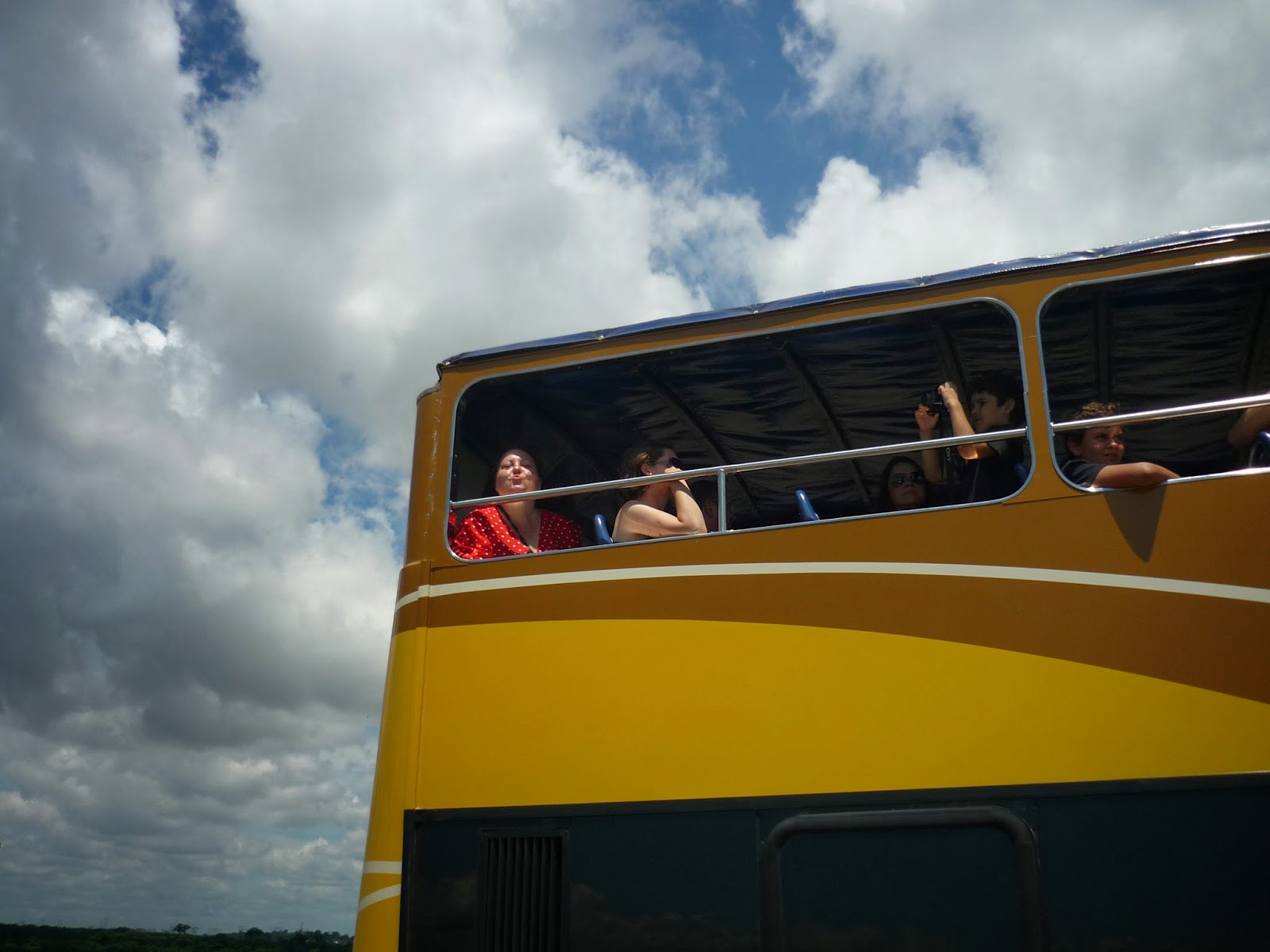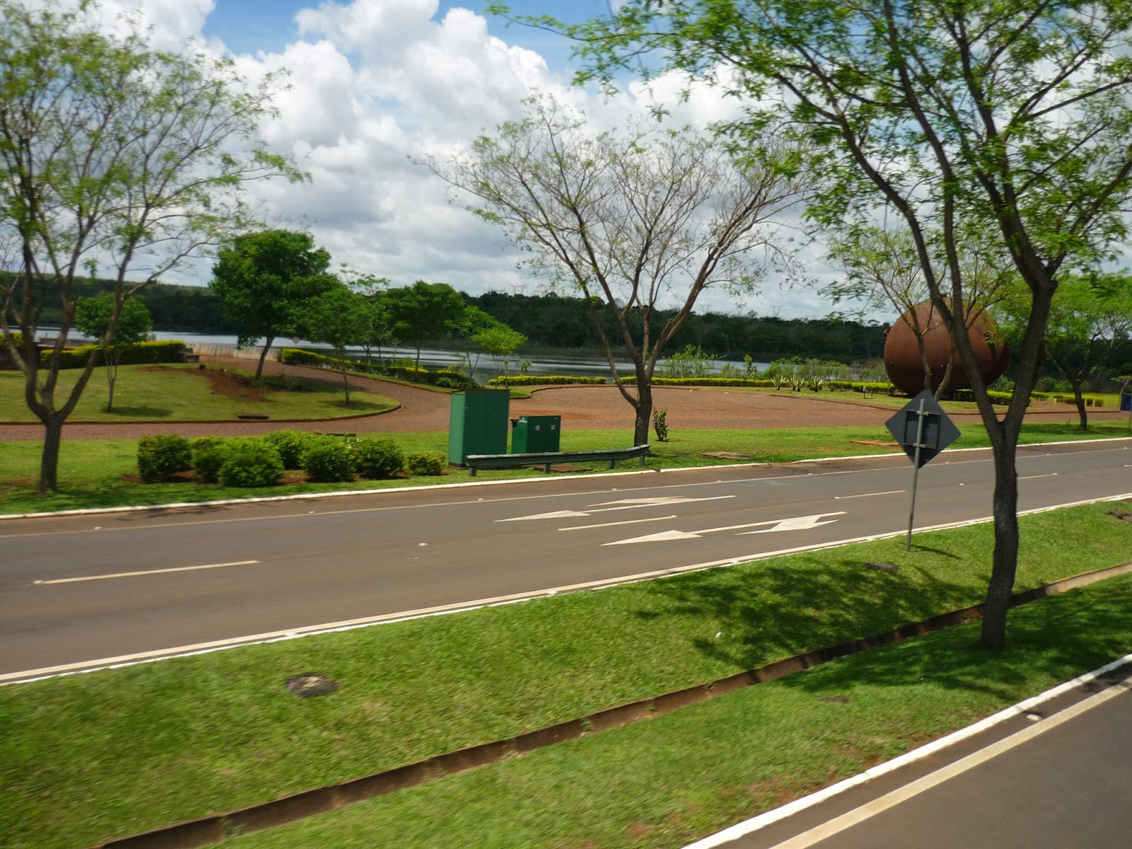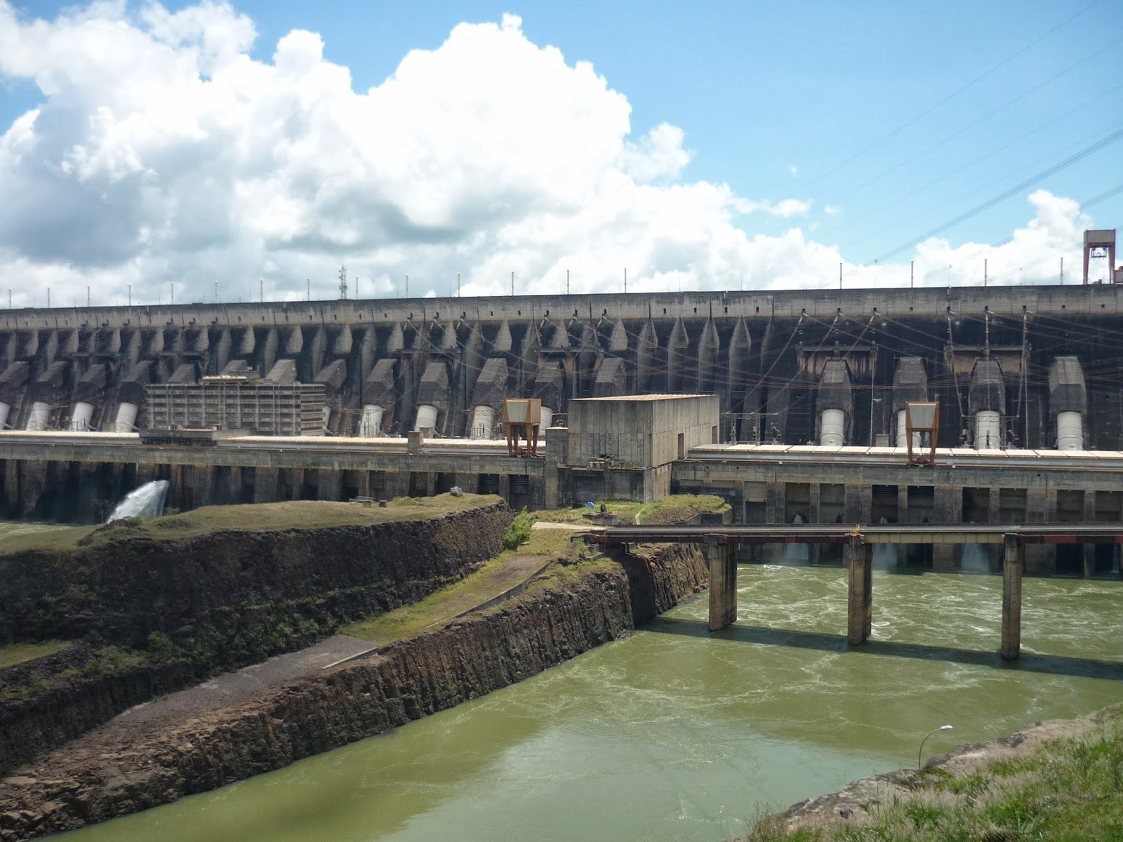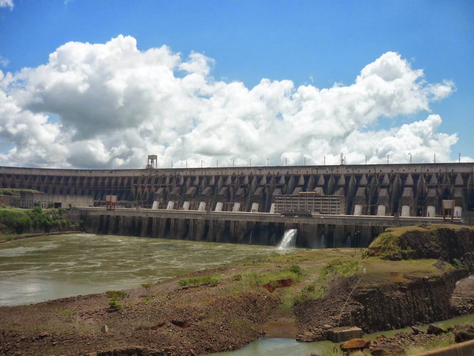 O segundo passeio foi a visita panorâmica da usina. Antes de começarmos o passeio, entramos em um auditório e acompanhamos um documentário sobre Itaipu. Achamos o vídeo extenso demais para uma visita turística e todos quase dormiram durante a exibição. Como o nosso guia pegou o número errado da “passagem”, fomos ao Ecomuseu e depois retornamos ao local de embarque do ônibus para poder fazer a visita.