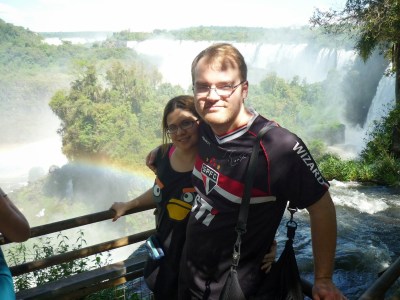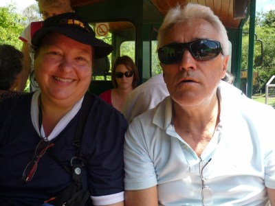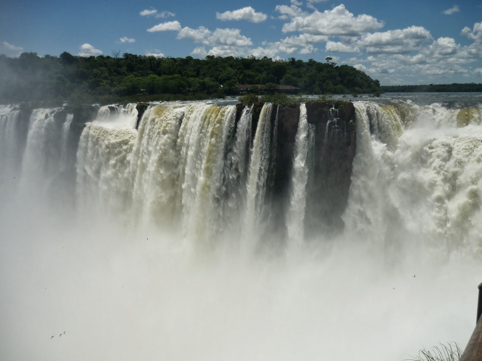 O passeio de hoje começou com o atraso de uma família do nosso “grupo”. Os atrasadinhos estavam no mesmo hotel que a gente. Perdoamos, pois era um casal de velhinhos. Passamos em outros hotéis para buscar mais pessoas e partimos para as cataratas. Levamos um tempo até chegar na Argentina e enfrentamos fila para poder entrar lá. Além disso, fomos barrados! O senhorzinho do casal estava com documento de identidade escaneado. O guia e outros passageiros tentaram conversar com os argentinos, mas não conseguiram reverter. O casalzinho teve que voltar de táxi para o hotel e nós prosseguimos com a viagem. Coitadinhos.