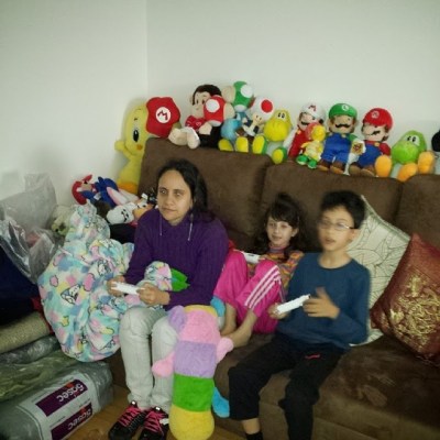Voltamos para casa e continuamos a jogar vídeo game. Recebemos a visita da Dona Ni e do Dudu, que já tinha saído da prova, e continuamos jogando – e demonstrando nossas habilidades – até a hora da janta!