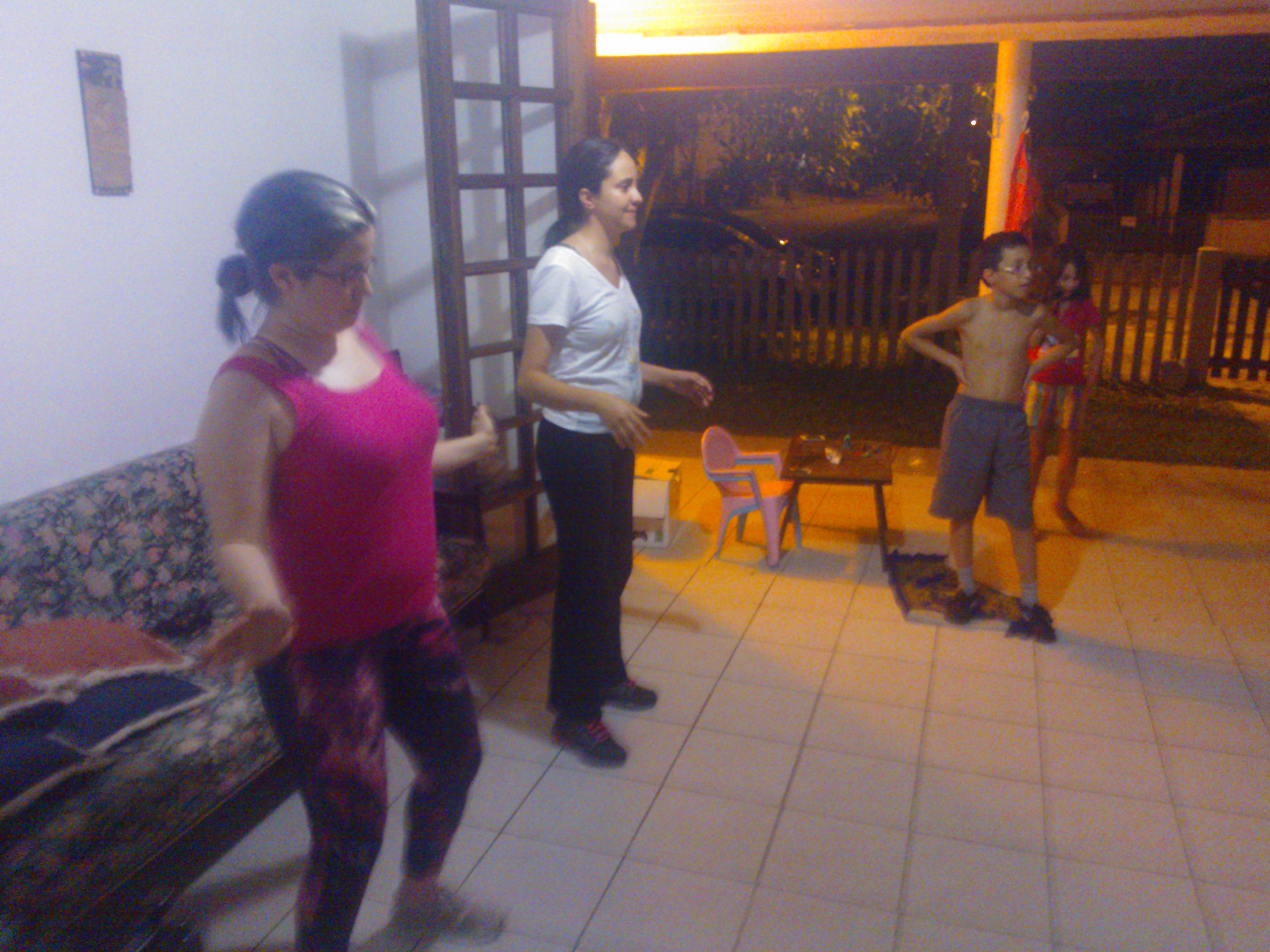 Um pouquinho mais à tarde fomos dar aquela passeadinha na praia, para ver o movimento. Voltamos para casa e fizemos uma série de exercícios utilizando os kids como treinadores (afinal, a gordice tem que ir embora).