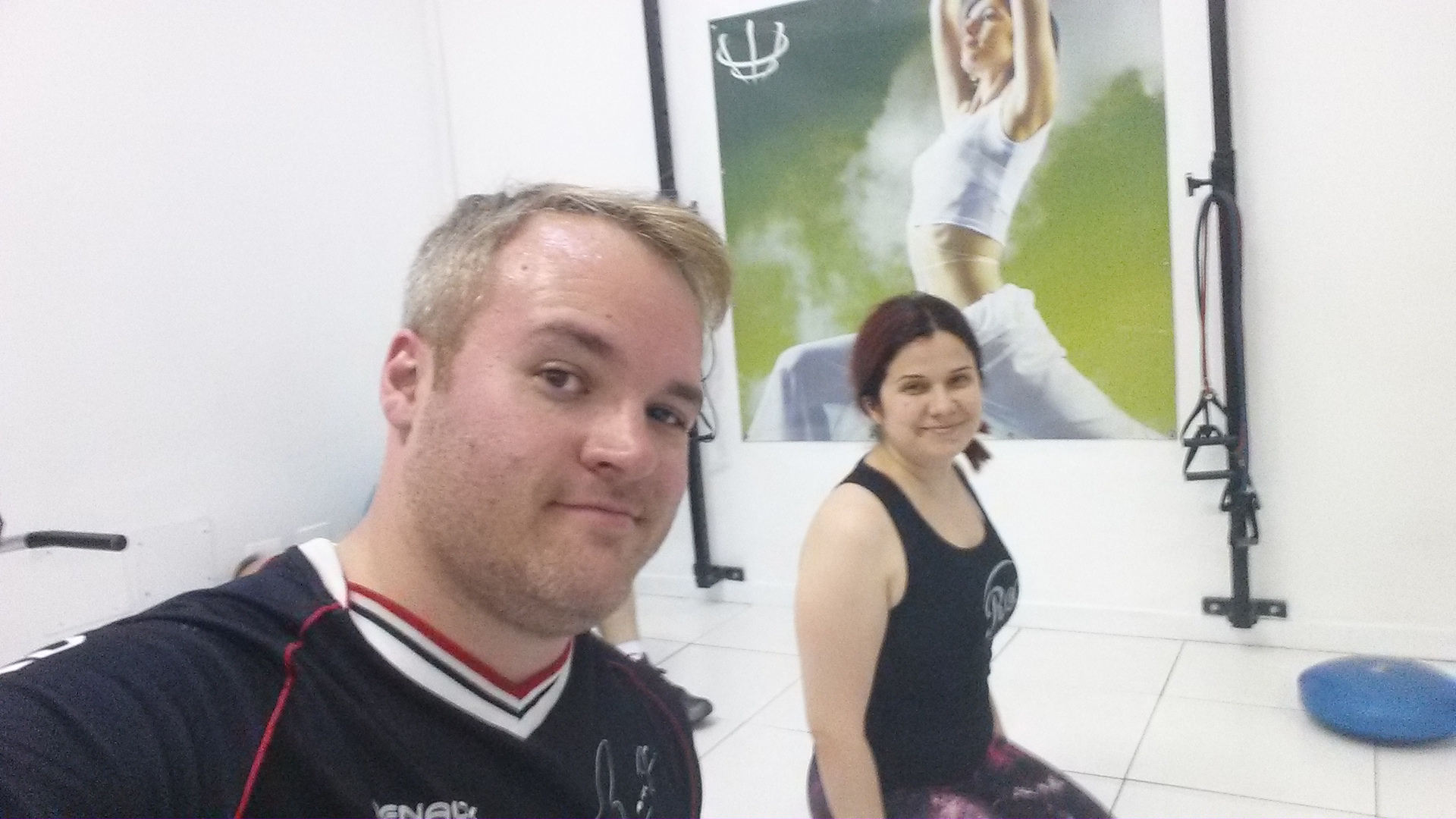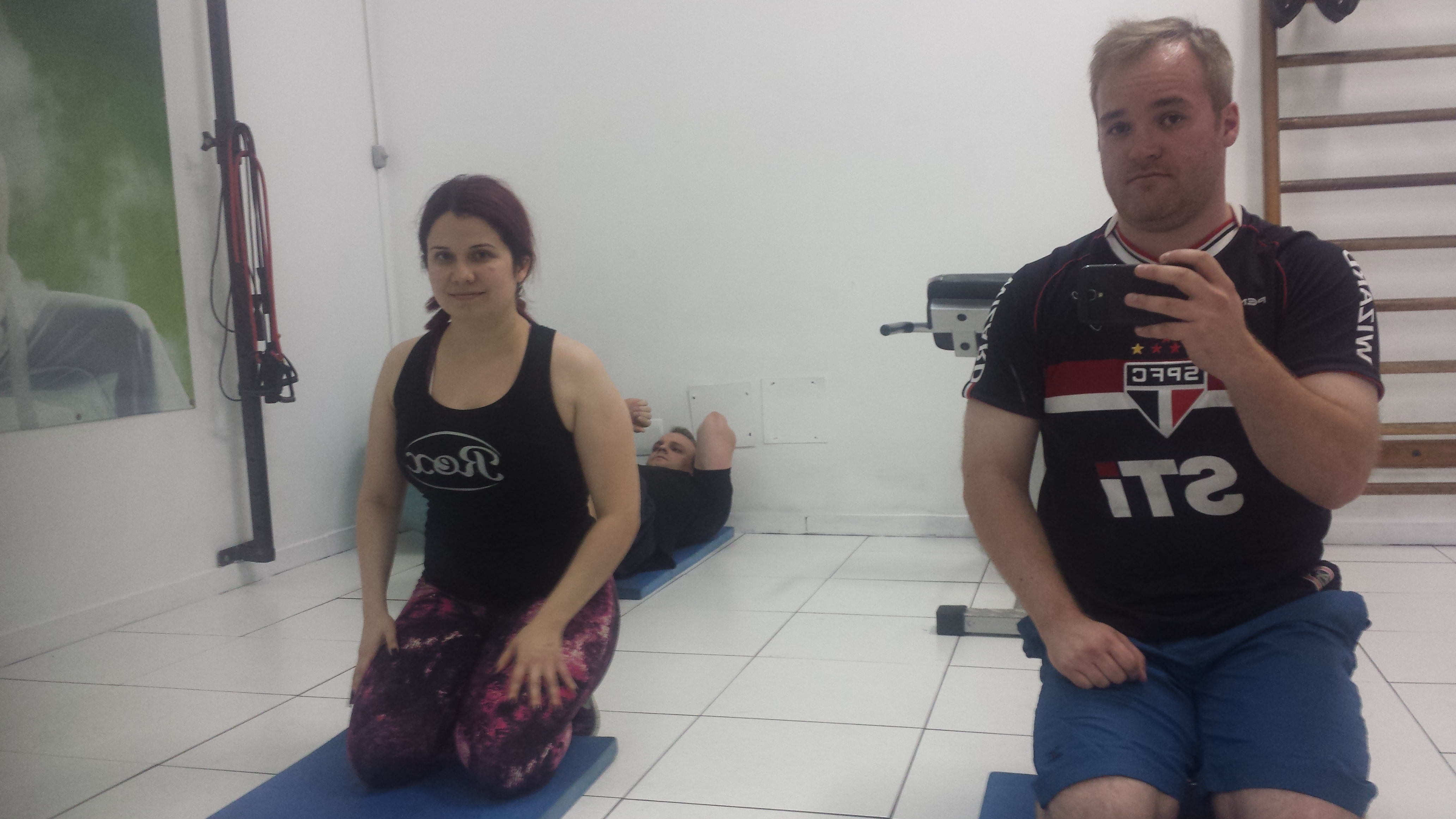 Depois do serviço, corremos para a academia. Lógico que chegamos tarde, mas o que se pode fazer. Aproveitamos para tirar uma fotos nos intervalos entre as duas mil abdominais que fizemos.