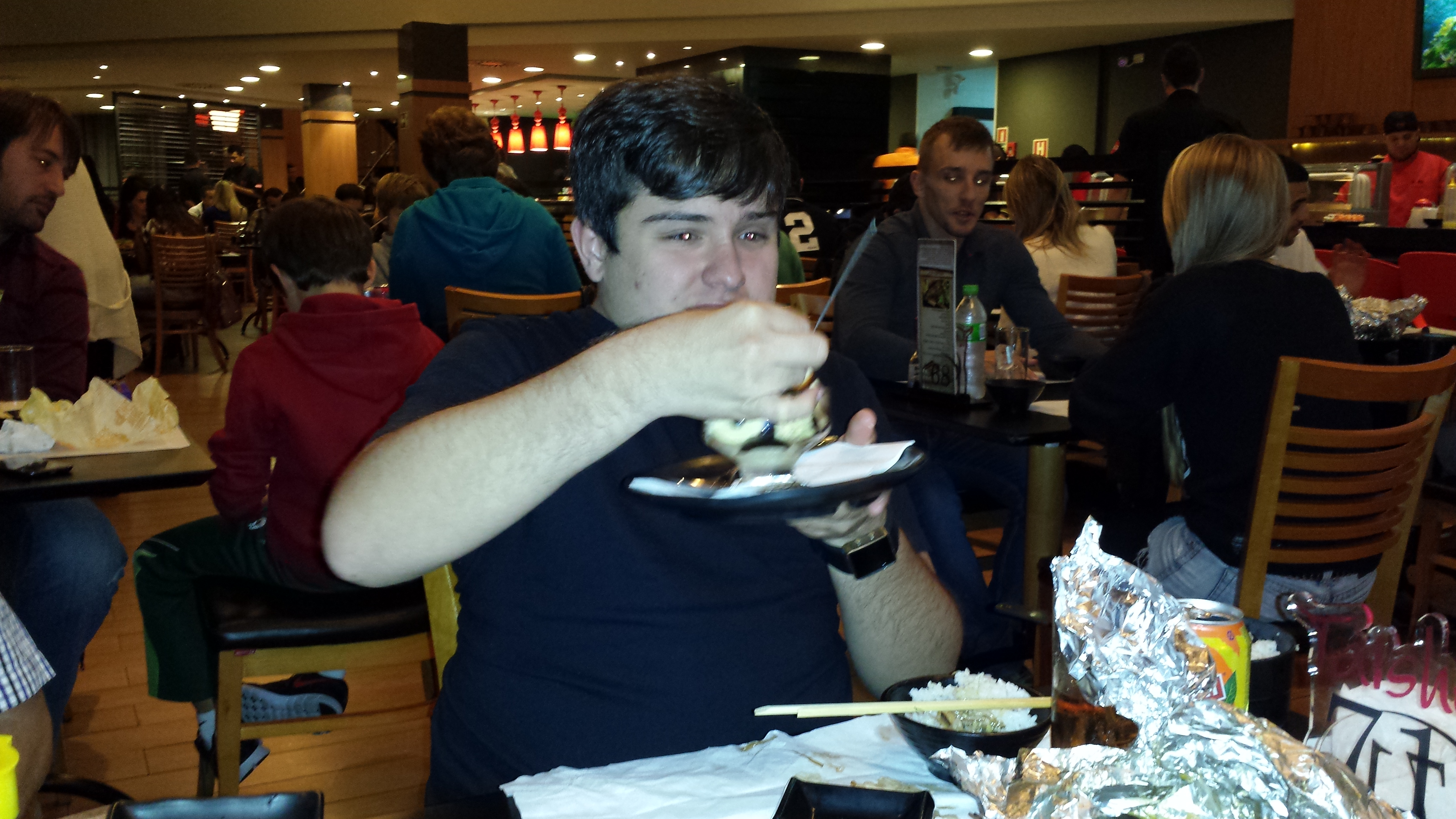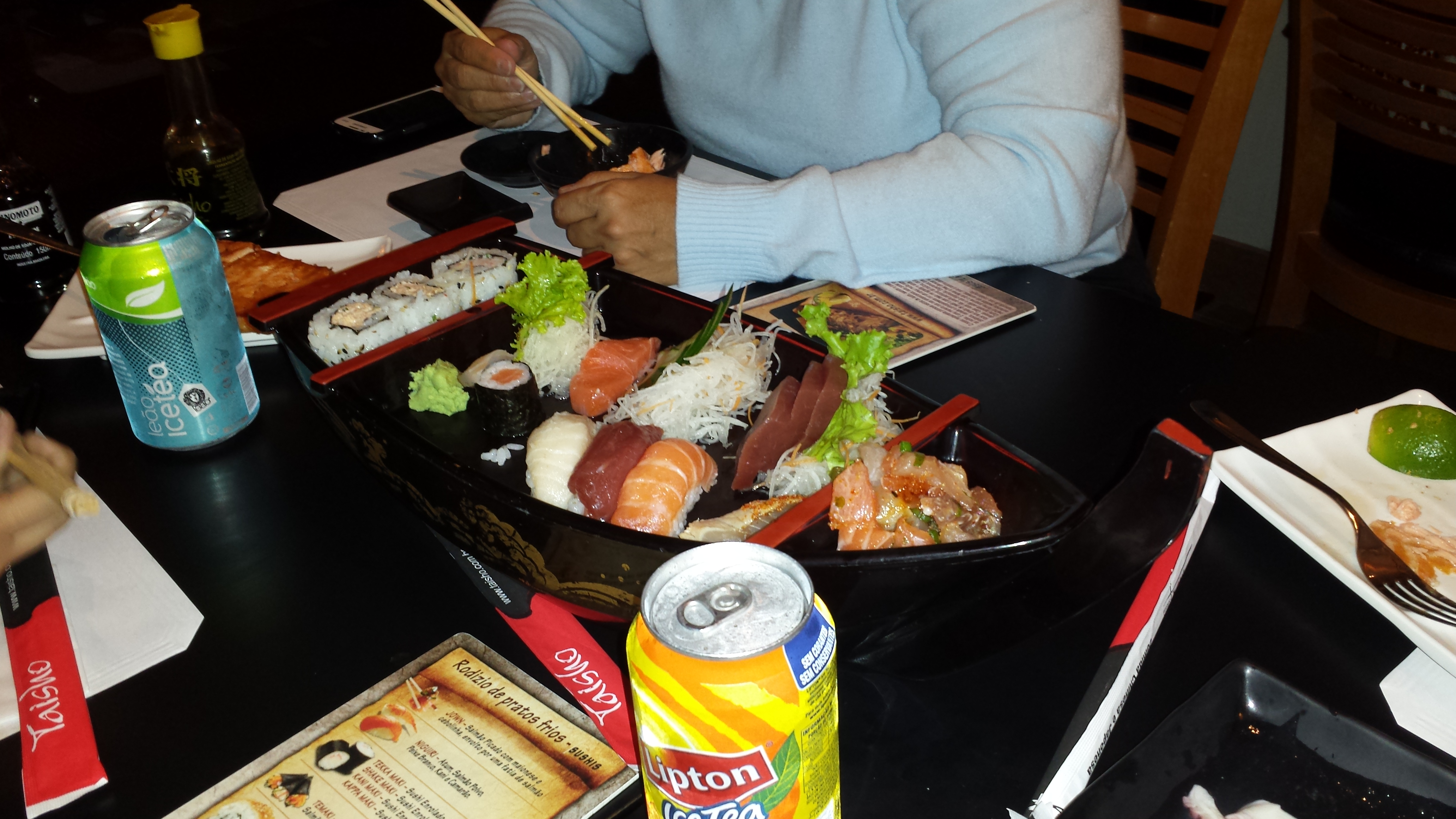 O dia começou como sempre. Acordamos cedo e fomos trabalhar. Saímos de lá e demos uma passada rápida em casa antes de irmos ao Taisho para o jantar comemorativo do níver do Guizote. No restaurante, comemos demais e demos muitas risadas ao longo da noite.