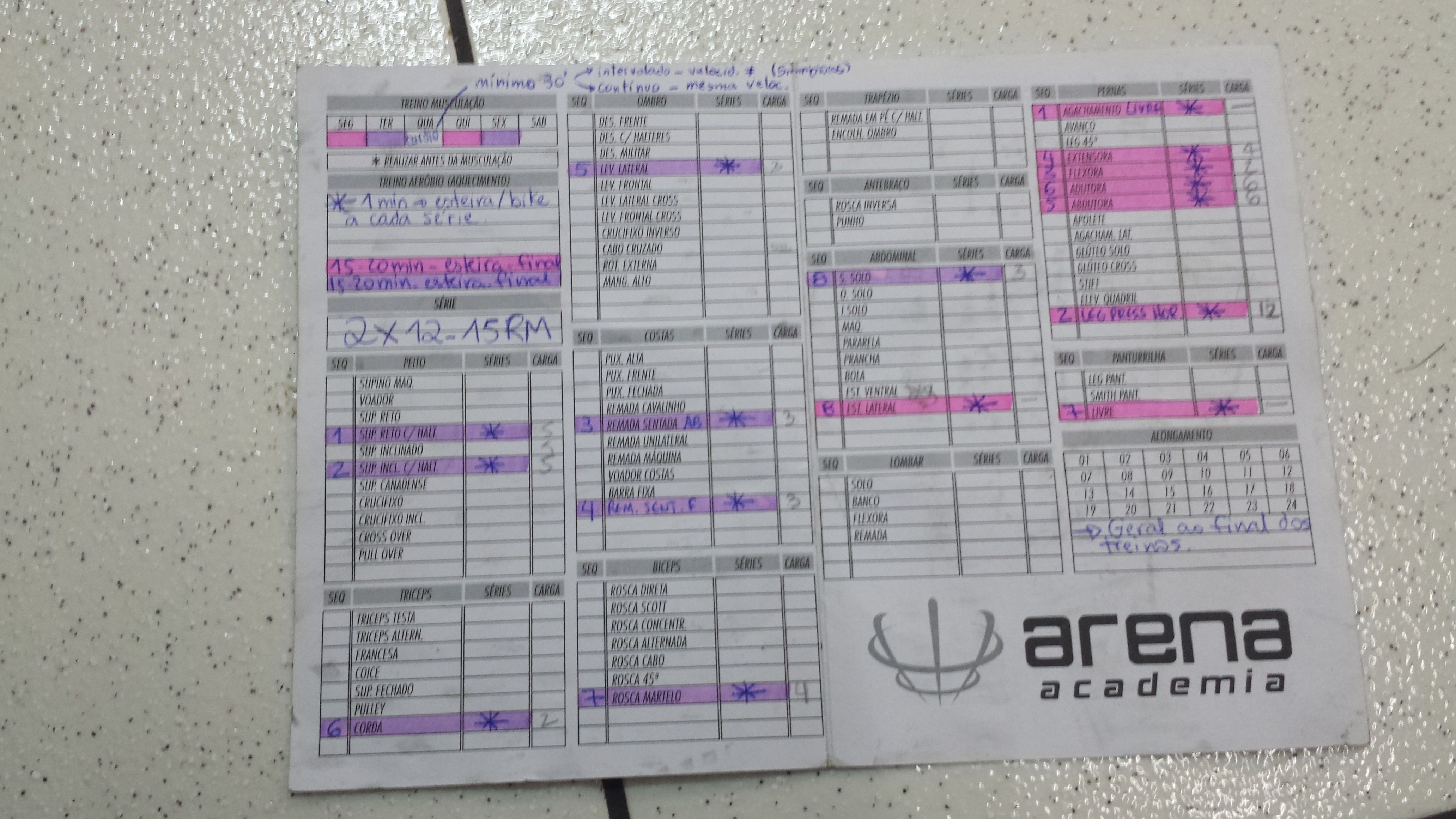 Sempre falamos de nossos treinos. Vejam como é que controlamos as cargas e exercícios diários. Treinamos de segunda a sexta, exceto nos dias que temos aulas ou compromissos importantes. Nossos exercícios foram escolhidos por profissionais especializados. Não tentem treinar sem acompanhamento e liberação de seus médicos. Exercício é importante e deve ser tratado de forma séria. Vale uma consulta com seu cardiologista para saber como está sua saúde e se pode iniciar atividades em uma academia.
