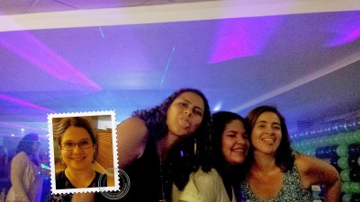 Passadinha rápida no banco e voltamos pra casa. Lá tivemos algumas horas de conversas e um almoço bem legal. Após o almoço, buscamos a Brum em algum lugar e voltamos. Perdemos a noção do tempo com histórias malucas e fotos. Bom demais!!! Depois a Vac ajudou a gente a se arrumar para a festa.